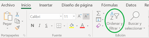 - Add a filter on the first row of the document clicking on the button Filter and Organize (Ctrl + Shift + L). As shown in the image below.