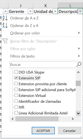 5. Open the document attached to this manual, called "Extensiones" and paste the information form step 4 on the first 2 columns of teh excel document. Authomaticaly an extension number will apear at column C.